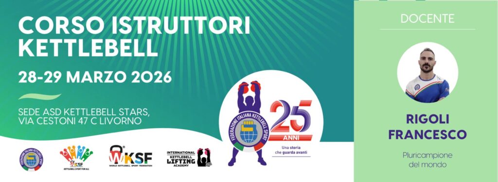 Corso riconosciuto da Federazione Italiana Kettlebell Sport-World Kettlebell Sport Federation (DIPLOMA FIKS, DIPLOMA IKLA INTERNAZIONALE, DIPLOMA NAZIONALE).