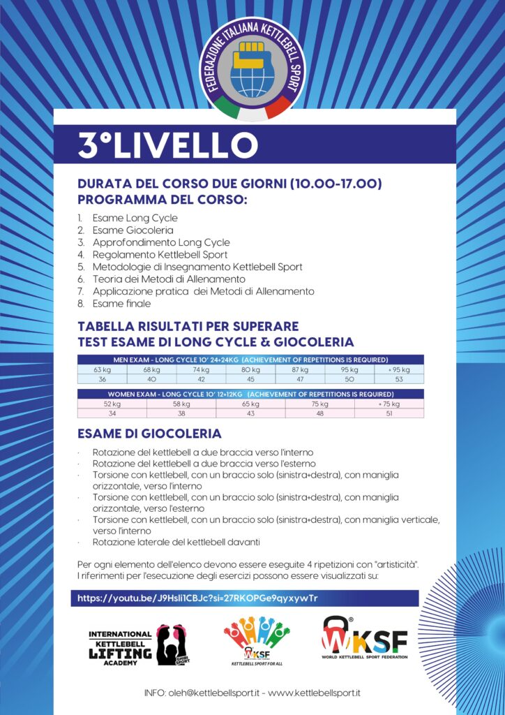 Corsi Istruttore Federazione Italiana Kettlebell Sport FIKS & IKLTC Trainer Courses